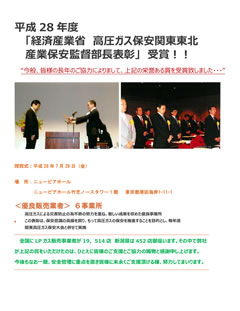 平成28年度「経済産業省 高圧ガス保安関東東北産業保安監督部長表彰」受賞!!